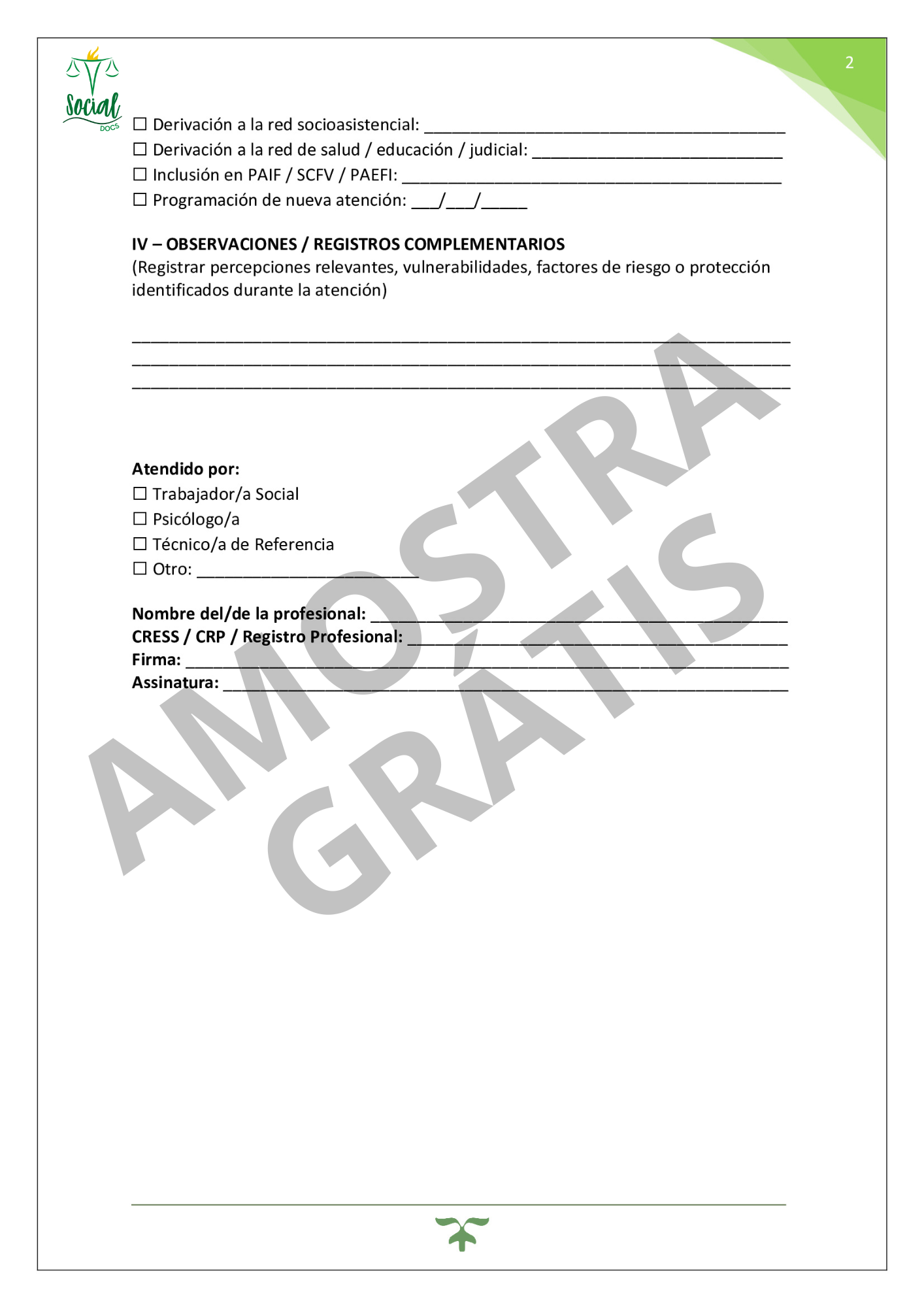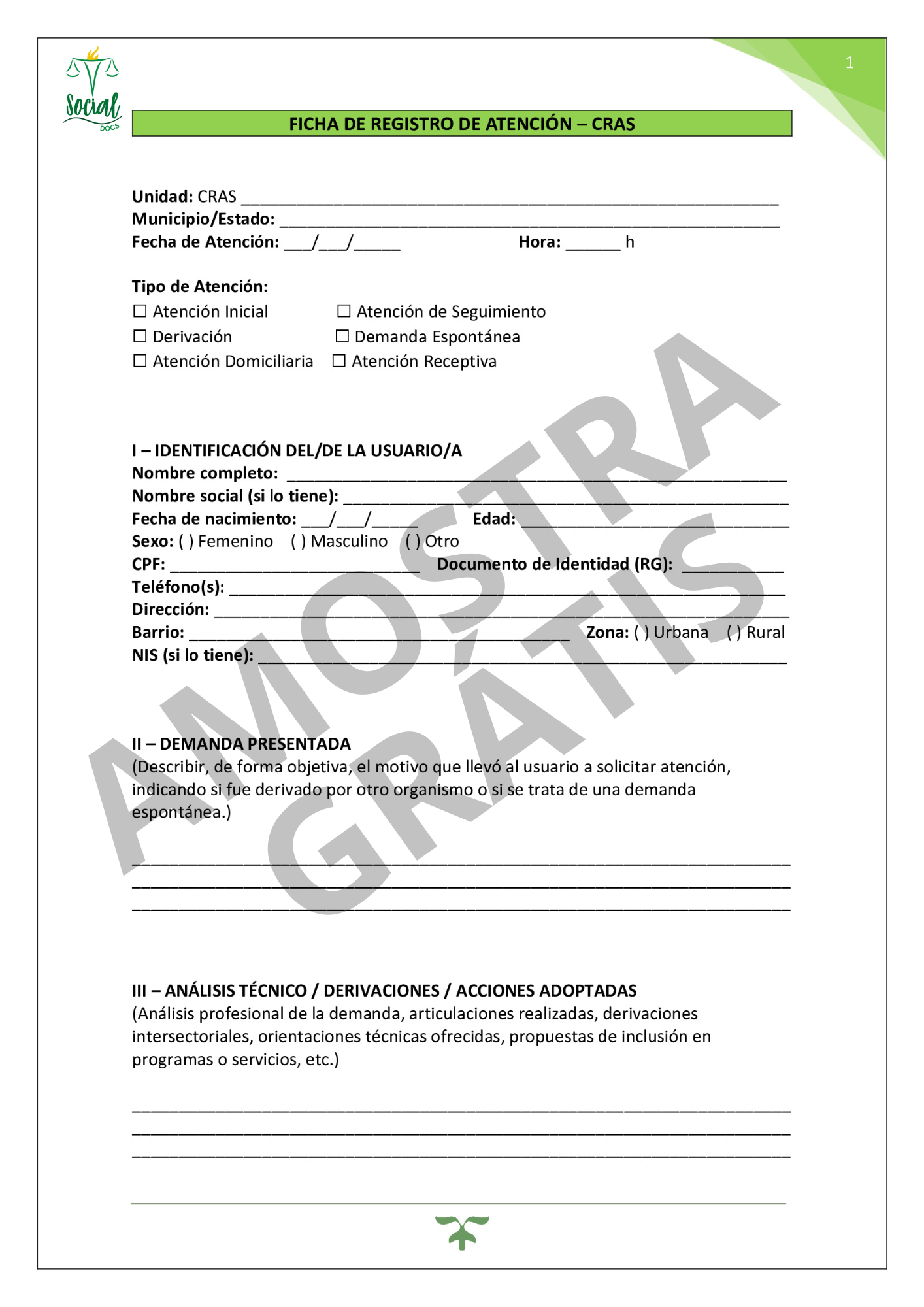 Ficha de Registro de Atención – CRAS